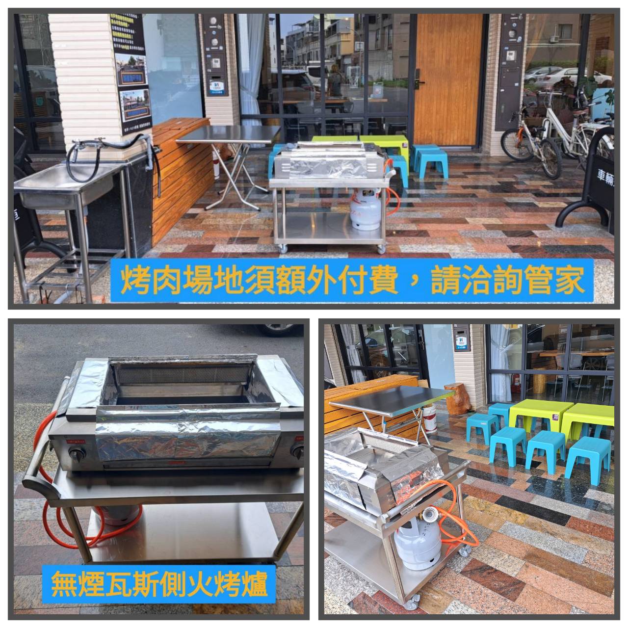 ■ 戶外烤肉需額外付費(需預約),提供設備為專業瓦斯無煙側烤爐,相關細節請詢問管家。