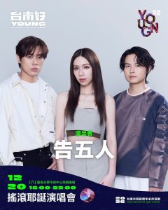告五人是近年來竄紅的獨立樂團,由主唱雲安、吉他手哲謙和鍵盤手世豪組成。他們的音樂風格清新自然,歌詞貼近生活,《在這座城市遺失了你》、《唯一》等歌曲在串流平台創下驚人播放次數。告五人的加入為這場演唱會增添了濃厚的文青氣息,也代表台南對獨立音樂的支持。