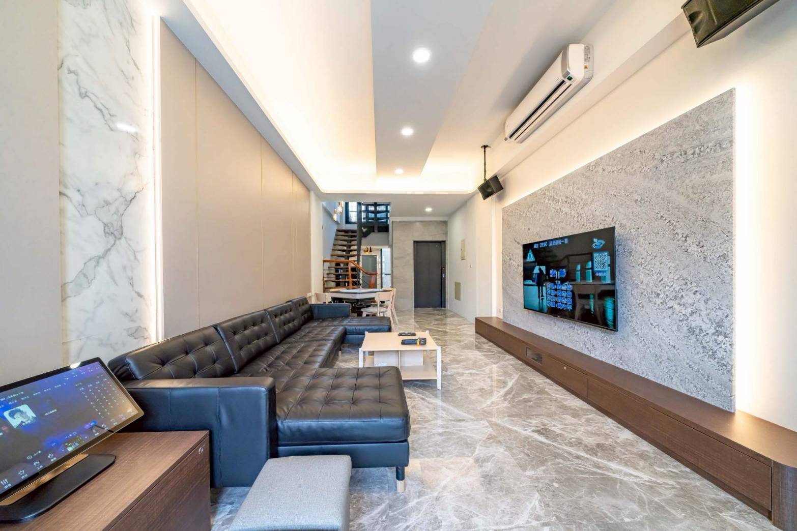 知築民宿可包棟入住10-18人,擁有獨棟雙併、挑高寬敞客廳,電動麻將、歡唱設備、貼心電梯、便利停車位等設施。